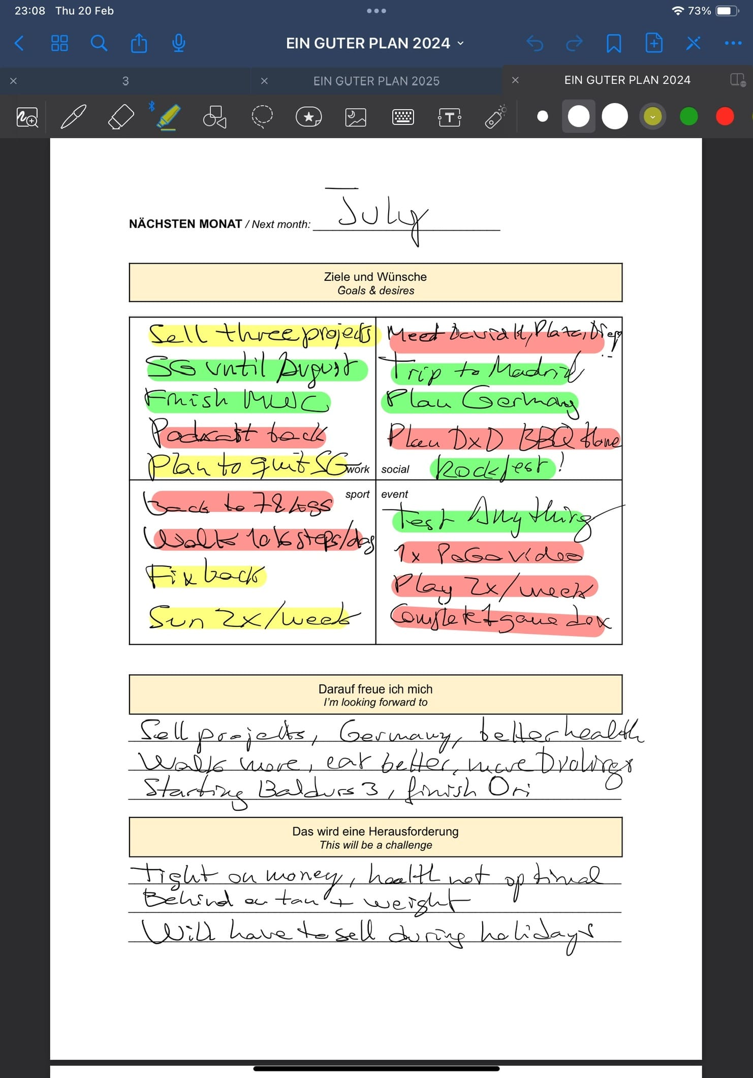 Ein Guter Plan is a sort of sophisticated diary (I have just learnt the difference between a journal and a diary). It helps you to review your life, year to year, and also to keep track of your personal progress over the weeks and days.